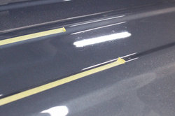 通常の研磨では、陥没クレーターの様に大きく段差のあるものは取り除き難いので、バフレックスにてペーパー処理していく。コンパウンドを用いるより遥かに研磨量が大きいのでテストしながら、必要最低限で最適な研磨量を見極めます。